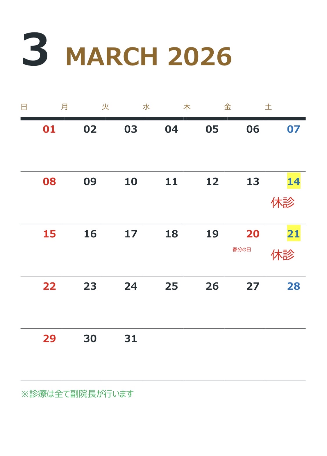 3月の診療スケジュールにつきまして